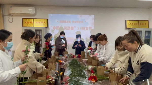 3月8日婦女節當天,結合新時代文明實踐工作內容,30余名女職工在醫院手工達人姚蕾的帶領下學習插花,感受插花藝術的魅力。活動現場花香滿溢,大家結合自己的喜好和風格,以花為材,修剪枝葉,整理花朵,發揮自己的想象力和創造力,錯落有致地搭配花草,探討著插花的藝術和要領,互相交流心得,溫暖情誼悄然而生,歡聲笑語在新時代文明實踐陣地中蕩漾。此次活動向廣大女職工傳遞了節日的祝福,不僅讓大家深刻感受到插花藝術魅力,更提高了感受美、欣賞美、創造美的能力,提升了女職工的幸福感、獲得感。